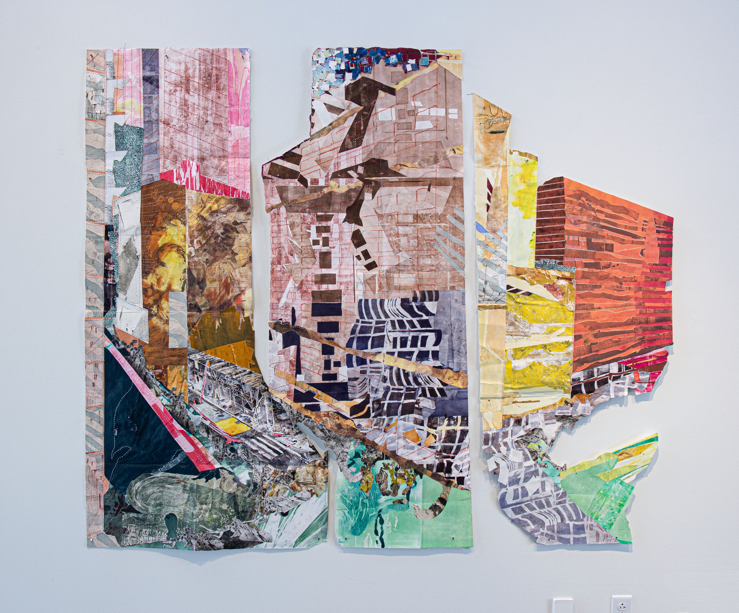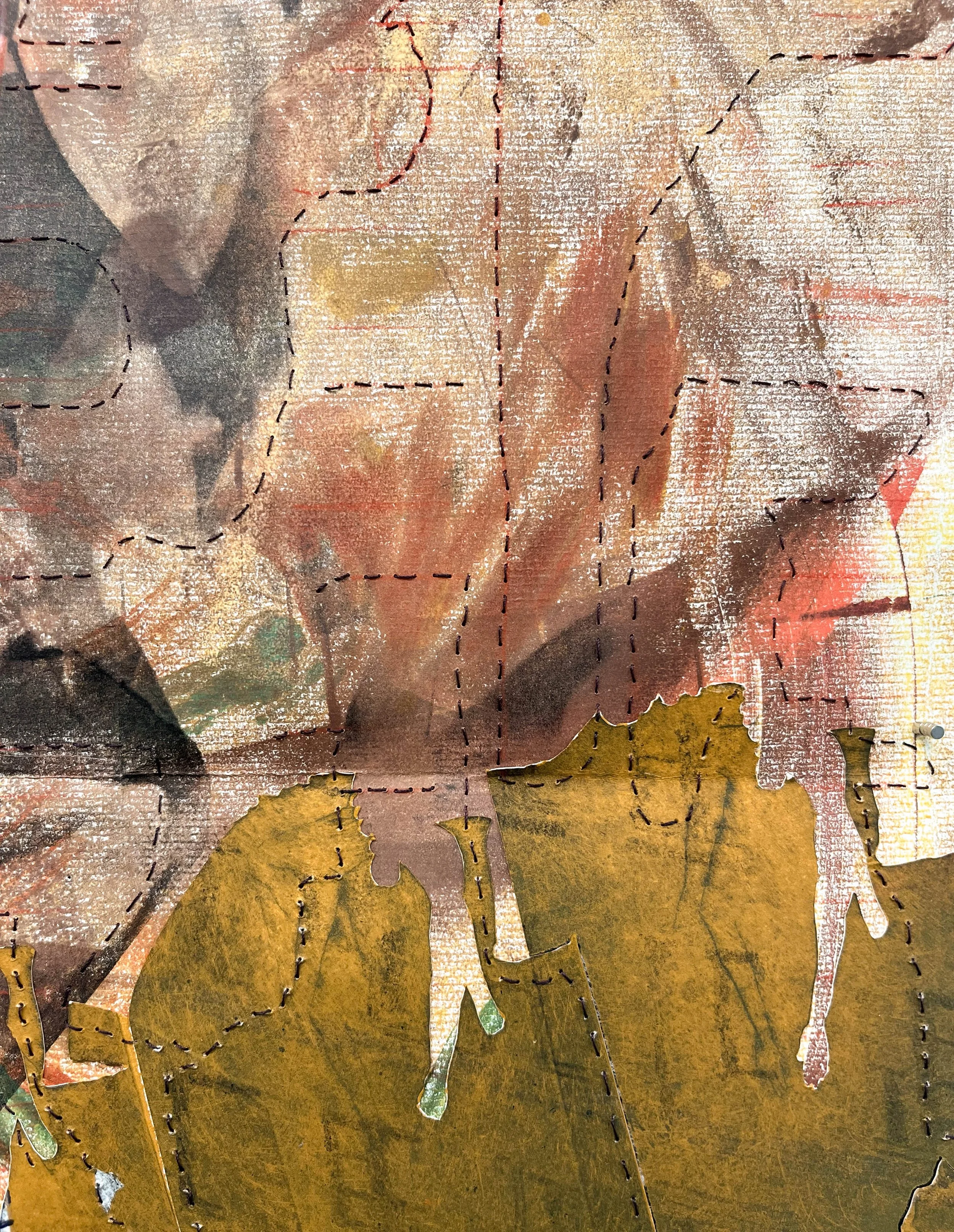 Woodcut, Intaglio and Monotype prints, collaged and hand-stitched